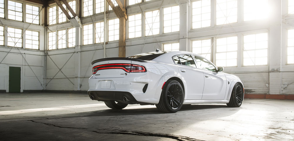 The 2023 Dodge Charger Scat Pack Widebody is powered by the 392-cubic-inch HEMI® V-8 engine with the best-in-class naturally aspirated 485 horsepower mated to the TorqueFlite 8HP70 eight-speed transmission.