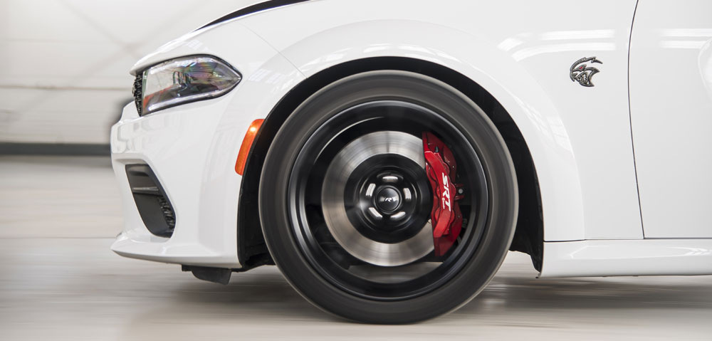 2023 Dodge Charger SRT Hellcat Redeye: Braking power comes from the standard Brembo brake system with two-piece, 15.7-inch front rotors and six-piston front calipers.