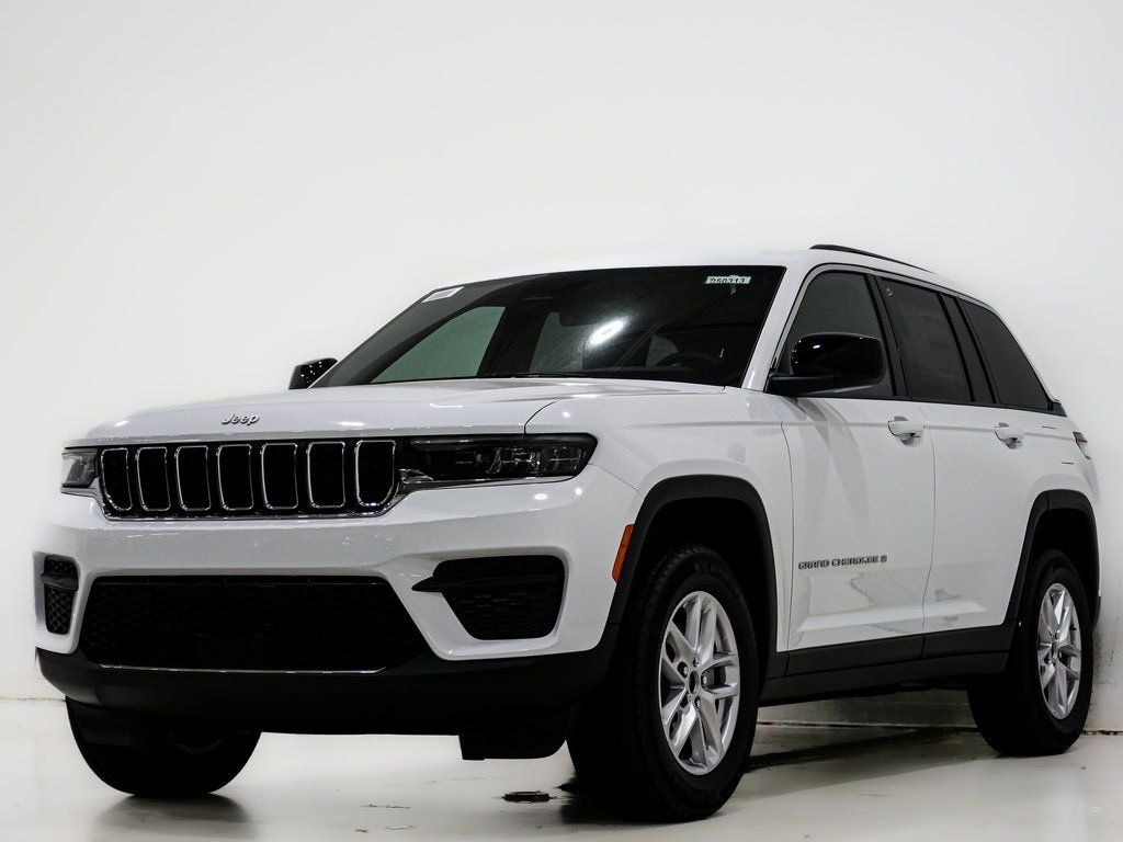 Price excludes tax, title, license, doc fee and dealer installed accessories. Price includes: $2250 - 2025 National Retail Bonus Cash . Exp. 02/02/2026 2025 Jeep Grand Cherokee Laredo X 4WD Bright White Clearcoat 3.6L V6 24V VVT 4WD, 115V Auxiliary Power Outlet, 4-Wheel Disc Brakes, 6 Speakers, ABS brakes, Air Conditioning, Alloy wheels, AM/FM radio: SiriusXM, Anti-whiplash front head restraints, Automatic temperature control, Brake assist, Bumpers: body-color, Cloth Seats, Compass, Delay-off headlights, Driver door bin, Driver vanity mirror, Dual front impact airbags, Dual front side impact airbags, Electronic Stability Control, Emergency communication system, Four wheel independent suspension, Front anti-roll bar, Front Bucket Seats, Front Center Armrest w/Storage, Front dual zone A/C, Front License Plate Bracket, Front reading lights, Fully automatic headlights, Heated door mirrors, Heated Front Seats, Heated Steering Wheel, Illuminated entry, Knee airbag, Laredo X, Low tire pressure warning, Luxury Tech Group I, Model Year Tracking, Normal Duty Suspension, Occupant sensing airbag, Outside temperature display, Overhead airbag, Overhead console, Panic alarm, ParkView Rear Back-Up Camera, Passenger door bin, Passenger vanity mirror, Power door mirrors, Power driver seat, Power Liftgate, Power steering, Power Sunroof, Power windows, Quick Order Package 23D Laredo X, Radio data system, Radio: Uconnect 5 with 8.4" Display, Rain Sensitive Windshield Wipers, Rear anti-roll bar, Rear reading lights, Rear window defroster, Rear window wiper, Remote keyless entry, Remote Start System, Satellite Radio, Secondary Active Grille Shutters, Security system, Selectable Tire Fill Alert, Speed control, Speed-Sensitive Wipers, Split folding rear seat, Spoiler, Steering wheel mounted audio controls, Tachometer, Telescoping steering wheel, Tilt steering wheel, Traction control, Trip computer, Variably intermittent wipers, Voltmeter, Wheels: 17" x 6.5" Fully Painted Aluminum, Wheels: 18" x 8" Fully Painted Aluminum, Wireless Charging Pad, 4WD.