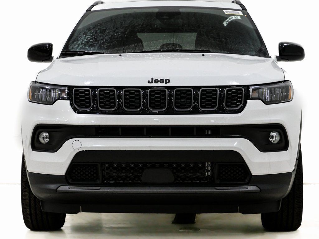 Price excludes tax, title, license, doc fee and dealer installed accessories. Price includes: $1000 - 2026 National Retail Bonus Cash . Exp. 03/02/2026 2026 Jeep Compass Latitude 4WD Bright White Clearcoat 2.0L I4 DOHC 4WD, 10.1" Touchscreen Display, 17" x 7" Aluminum Wheels, 2nd Row USB Type A/C Charge Only, 3.73 Final Drive Ratio, 4-Wheel Disc Brakes, 4G LTE Wi-Fi Hot Spot, 6 Speakers, ABS brakes, Air Conditioning, Air Conditioning ATC with Dual Zone Control, All-Season Floor Mats, Altitude Special Edition, AM/FM radio: SiriusXM, Auto High-beam Headlights, Auto-Dimming Rear-View Mirror, Automatic temperature control, Black Day Light Opening Moldings, Bluetooth Handsfree Phone and Audio, Brake assist, Bumpers: body-color, Compass, Convenience Group, Delay-off headlights, Driver door bin, Driver vanity mirror, Dual front impact airbags, Dual front side impact airbags, Electronic Stability Control, Emergency communication system: SiriusXM Guardian, Foot Activated Open 'n Go Liftgate, Four wheel independent suspension, Front anti-roll bar, Front Bucket Seats, Front Center Armrest w/Storage, Front fog lights, Front License Plate Bracket, Front reading lights, Fully automatic headlights, Global Telematics Box Module, Gloss Black Surround/Neutral Gray Rings, Heated door mirrors, Heated front seats, Heated steering wheel, Humidity Sensor, Illuminated entry, Knee airbag, Leather Shift Knob, Leather steering wheel, Low tire pressure warning, Manufacture Statement of Origin, Neutral Gray Exterior Badging, Occupant sensing airbag, Outside temperature display, Overhead airbag, Overhead console, Panic alarm, ParkView Rear Back-Up Camera, Passenger door bin, Passenger vanity mirror, Piano Black Interior Accents, Power 2-Way Driver Lumbar Adjust, Power Adjust 8-Way Driver Seat, Power door mirrors, Power Front/Fixed Rear Full Sunroof, Power Liftgate, Power steering, Power windows, Premium Alpine Speaker System, Premium audio system: UConnect 5, Premium Cloth/Vinyl Bucket Seats, Quick Order Package 29N Altitude, Radio: Uconnect 5 with 8.4" Display, Rear anti-roll bar, Rear seat center armrest, Rear window defroster, Rear window wiper, Remote keyless entry, Security system, SiriusXM Satellite Radio, Sliding Sun Visors with Illuminated Mirrors, Speed control, Split folding rear seat, Spoiler, Steering wheel mounted audio controls, Sun and Sound Group, Tachometer, Telescoping steering wheel, Tilt steering wheel, Traction control, Trip computer, Variably intermittent wipers, Wheels: 18" x 7" Gloss Black Painted Aluminum, Wheels: 19" x 7.5" Aluminum Painted, Windshield Wiper De-Icer, 4WD.