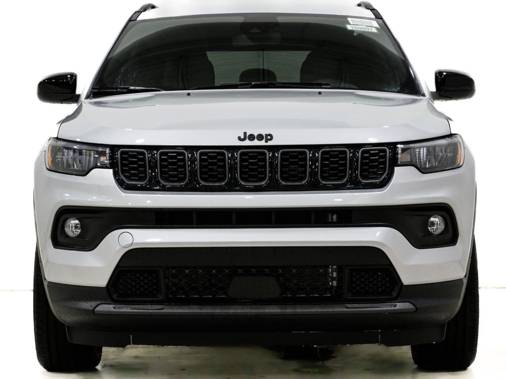 Price excludes tax, title, license, doc fee and dealer installed accessories. Price includes: $1000 - 2026 National Retail Bonus Cash . Exp. 03/31/2026 $500 - 2026 Midwest BC Retail Bonus Cash . Exp. 03/31/2026 2026 Jeep Compass Latitude 4WD Silver Zynith Metallic Clearcoat 2.0L I4 DOHC 4WD, 10.1" Touchscreen Display, 17" x 7" Aluminum Wheels, 3.73 Final Drive Ratio, 4-Wheel Disc Brakes, 4G LTE Wi-Fi Hot Spot, 6 Speakers, ABS brakes, Air Conditioning, Altitude Special Edition, AM/FM radio: SiriusXM, Auto High-beam Headlights, Automatic temperature control, Black Day Light Opening Moldings, Bluetooth Handsfree Phone and Audio, Brake assist, Bumpers: body-color, Compass, Delay-off headlights, Driver door bin, Driver vanity mirror, Dual front impact airbags, Dual front side impact airbags, Electronic Stability Control, Emergency communication system: SiriusXM Guardian, Four wheel independent suspension, Front anti-roll bar, Front Bucket Seats, Front Center Armrest w/Storage, Front fog lights, Front License Plate Bracket, Front reading lights, Fully automatic headlights, Global Telematics Box Module, Gloss Black Surround/Neutral Gray Rings, Heated door mirrors, Heated front seats, Heated steering wheel, Illuminated entry, Knee airbag, Leather Shift Knob, Leather steering wheel, Low tire pressure warning, Neutral Gray Exterior Badging, Occupant sensing airbag, Outside temperature display, Overhead airbag, Overhead console, Panic alarm, ParkView Rear Back-Up Camera, Passenger door bin, Passenger vanity mirror, Piano Black Interior Accents, Power door mirrors, Power steering, Power windows, Premium audio system: UConnect 5, Premium Cloth/Vinyl Bucket Seats, Quick Order Package 29N Altitude, Radio: Uconnect 5 with 8.4" Display, Rear anti-roll bar, Rear seat center armrest, Rear window defroster, Rear window wiper, Remote keyless entry, Security system, SiriusXM Satellite Radio, Sliding Sun Visors with Illuminated Mirrors, Speed control, Split folding rear seat, Spoiler, Steering wheel mounted audio controls, Tachometer, Telescoping steering wheel, Tilt steering wheel, Traction control, Trip computer, Variably intermittent wipers, Wheels: 18" x 7" Gloss Black Painted Aluminum, Wheels: 19" x 7.5" Aluminum Painted, 4WD.