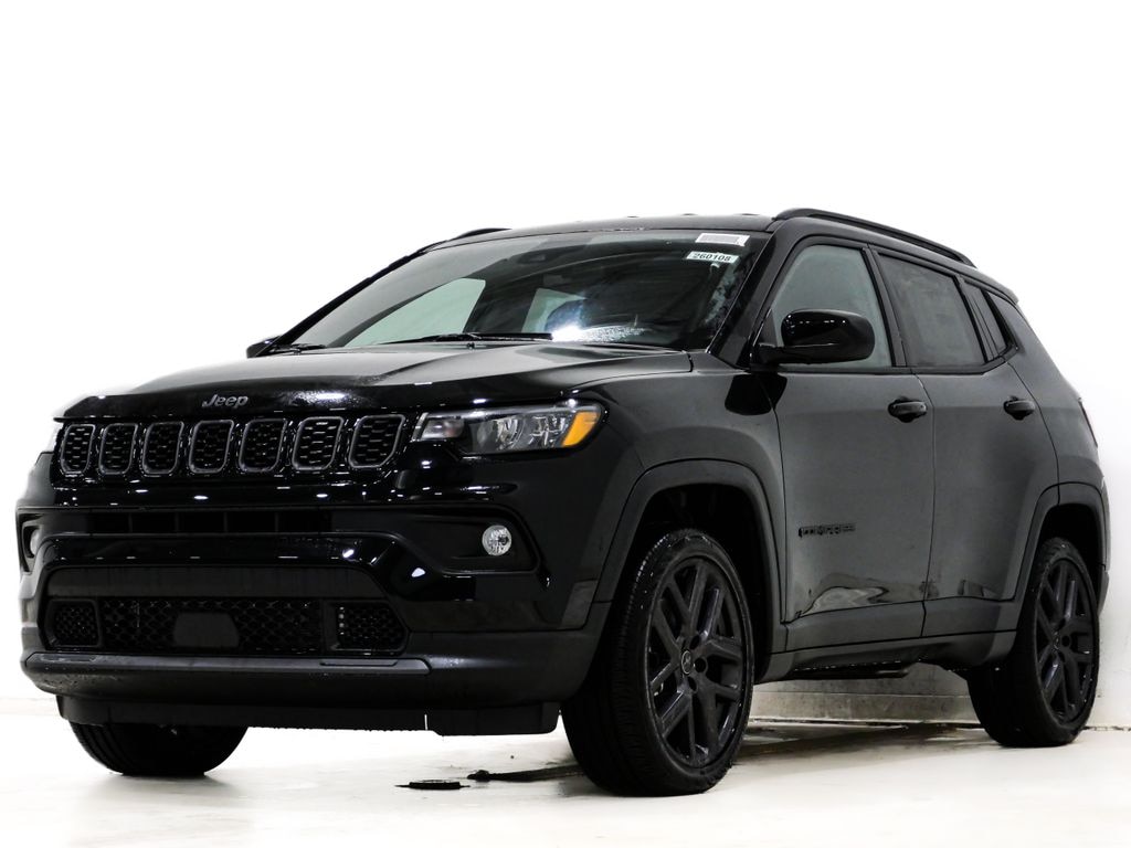 Price excludes tax, title, license, doc fee and dealer installed accessories. Price includes: $1000 - 2026 National Retail Bonus Cash . Exp. 04/30/2026 $500 - 2026 Midwest BC Retail Bonus Cash . Exp. 04/30/2026 2026 Jeep Compass Latitude 4WD Diamond Black Crystal Pearlcoat 2.0L I4 DOHC 4WD, 10.1" Touchscreen Display, 17" x 7" Aluminum Wheels, 3.73 Final Drive Ratio, 4-Wheel Disc Brakes, 4G LTE Wi-Fi Hot Spot, 6 Speakers, ABS brakes, Air Conditioning, Altitude Special Edition, AM/FM radio: SiriusXM, Auto High-beam Headlights, Automatic temperature control, Black Day Light Opening Moldings, Bluetooth Handsfree Phone and Audio, Brake assist, Bumpers: body-color, Compass, Delay-off headlights, Driver door bin, Driver vanity mirror, Dual front impact airbags, Dual front side impact airbags, Electronic Stability Control, Emergency communication system: SiriusXM Guardian, Four wheel independent suspension, Front anti-roll bar, Front Bucket Seats, Front Center Armrest w/Storage, Front fog lights, Front License Plate Bracket, Front reading lights, Fully automatic headlights, Global Telematics Box Module, Gloss Black Surround/Neutral Gray Rings, Heated door mirrors, Heated front seats, Heated steering wheel, Illuminated entry, Knee airbag, Leather Shift Knob, Leather steering wheel, Low tire pressure warning, Neutral Gray Exterior Badging, Occupant sensing airbag, Outside temperature display, Overhead airbag, Overhead console, Panic alarm, ParkView Rear Back-Up Camera, Passenger door bin, Passenger vanity mirror, Piano Black Interior Accents, Power door mirrors, Power steering, Power windows, Premium audio system: UConnect 5, Premium Cloth/Vinyl Bucket Seats, Quick Order Package 29N Altitude, Radio: Uconnect 5 with 8.4" Display, Rear anti-roll bar, Rear seat center armrest, Rear window defroster, Rear window wiper, Remote keyless entry, Security system, SiriusXM Satellite Radio, Sliding Sun Visors with Illuminated Mirrors, Speed control, Split folding rear seat, Spoiler, Steering wheel mounted audio controls, Tachometer, Telescoping steering wheel, Tilt steering wheel, Traction control, Trip computer, Variably intermittent wipers, Wheels: 18" x 7" Gloss Black Painted Aluminum, Wheels: 19" x 7.5" Aluminum Painted, 4WD.