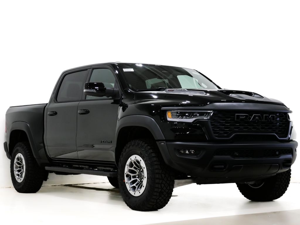2026 Ram 1500 RHO 4WD Diamond Black Crystal Pearlcoat 3.0L I6 10 Speakers, 12-Way/1-Way Trailer Connector, 14.4" Touchscreen Display, 240 Amp Alternator, 3.92 Rear Axle Ratio, 4-Wheel Disc Brakes, 4G LTE Wi-Fi Hot Spot, ABS brakes, Adaptive suspension, Adjustable pedals, Air Conditioning, Alloy wheels, AM/FM radio, Apple CarPlay/Android Auto, Auto High-beam Headlights, Auto Power-Folding Mirrors, Auto-dimming door mirrors, Auto-Dimming Exterior Driver Mirror, Auto-dimming Rear-View mirror, Automatic temperature control, Bed Utility Group, Brake assist, Compass, Connected Travel and Traffic Services, Connectivity - US/Canada, Delay-off headlights, Disassociated Touchscreen Display, Dome Dual LED Reading Lamp, Driver door bin, Driver Power Seat Back Massage, Driver Seat Memory, Driver vanity mirror, Driver/Passenger Wrapped Assist Handles, Drowsy Driver Detection, Dual front impact airbags, Dual front side impact airbags, Dual Wireless Charging Pad, Dual-Pane Panoramic Sunroof, Electronic Stability Control, Evasive Steer Assist, Exterior 115V AC Outlet, Exterior Mirrors Courtesy Lamps, Exterior Mirrors with Heating Element, Exterior Mirrors with Memory, Exterior Mirrors with Supplemental Signals, Exterior Parking Camera Rear, Flareside Box, Front anti-roll bar, Front Bucket Seats, Front Center Armrest w/Storage, Front dual zone A/C, Front fog lights, Front License Plate Bracket, Front Passenger Interactive Display, Front Passenger Power Seat Back Massage, Front reading lights, Front wheel independent suspension, Full Length Premium Upgraded Floor Console, Fully automatic headlights, Garage door transmitter, GPS Navigation, Hands-Free Active Driving Assist System, Harman/Kardon 19 Speaker Premium Sound, HD Radio, Heads-Up Display, Heated door mirrors, Heated front seats, Heated Second Row Seats, Heated steering wheel, Illuminated entry, Integrated Center Stack Radio, Integrated Voice Command with Bluetooth, Intersection Collision Assist System, Leather Shift Knob, Leather steering wheel, Leather Trimmed Bucket Seats, Leather/Carbon Flat-Bottom Steering Wheel, LED CHMSL Lamp, Low tire pressure warning, Luxury Front Door Trim Panel, Manufacturer's Statement of Origin, MOPAR 4 Adjustable Cargo Tie-Down Hooks, MOPAR Deployable Bed Step, Navigation System, Occupant sensing airbag, Outside temperature display, Overhead airbag, Overhead console, Panic alarm, Passenger door bin, Passenger vanity mirror, Power Adjustable Pedals with Memory, Power door mirrors, Power driver seat, Power passenger seat, Power steering, Power Tailgate, Power windows, Premium Wrapped Instrument Panel Bezel, Quick Order Package 22Y RHO, Radio data system, Radio: Uconnect 5 Nav with 14.4" Display, Radio: Uconnect 5 Navigation with 12.0" Display, Radio/Driver Seat/Mirrors/Pedals Memory, Rain Sensitive Windshield Wipers, Real Carbon Fiber Interior Accents, Rear 60/40 Folding Split Recline Seat, Rear reading lights, Rear seat center armrest, Rear step bumper, Rear window defroster, Remote keyless entry, RHO Level 1 Equipment Group, Security system, SiriusXM Radio Service, Smartphone as a Key Capable, Speed control, Split folding rear seat, Sport steering wheel, Steering wheel mounted audio controls, Surround View Camera System, Tachometer, Telescoping steering wheel, Tilt steering wheel, Traction control, Traffic Sign Recognition, Trip computer, Turn signal indicator mirrors, USB Host Flip, Variably intermittent wipers, Ventilated Front Seats, Ventilated Rear Seats, Voltmeter, Wheels: 18" x 9" Bead-Lock Aluminum, Wheels: 18" x 9" Black Paint/Polish Aluminum.