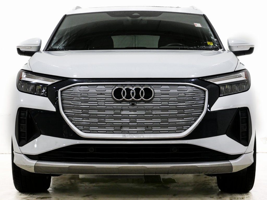 2022 Audi Q4 e-tron Premium Plus quattro Electric Motor quattro White 8 Speakers, ABS brakes, Air Conditioning, Alloy wheels, Auto High-beam Headlights, Automatic temperature control, Brake assist, Bumpers: body-color, Delay-off headlights, Driver door bin, Driver vanity mirror, Dual front impact airbags, Dual front side impact airbags, Electronic Stability Control, Emergency communication system: Audi connect CARE, Exterior Parking Camera Rear, Four wheel independent suspension, Front anti-roll bar, Front Bucket Seats, Front Center Armrest, Front dual zone A/C, Front reading lights, Fully automatic headlights, Genuine wood dashboard insert, Heated door mirrors, Heated Front Seats, Heated front seats, Illuminated entry, Leather Seating Surfaces, Leather steering wheel, Low tire pressure warning, Occupant sensing airbag, Outside temperature display, Overhead airbag, Overhead console, Panic alarm, Passenger door bin, Passenger vanity mirror, Power door mirrors, Power driver seat, Power moonroof: Panoramic, Power steering, Power windows, Radio data system, Radio: Audi Sound System, Rain sensing wipers, Rear air conditioning, Rear anti-roll bar, Rear reading lights, Rear seat center armrest, Rear window defroster, Rear window wiper, Remote keyless entry, Roof rack: rails only, Security system, Speed control, Speed-sensing steering, Split folding rear seat, Spoiler, Steering wheel mounted audio controls, TBD Axle Ratio, Telescoping steering wheel, Tilt steering wheel, Traction control, Trip computer, Turn signal indicator mirrors, Variably intermittent wipers, Wheels: 19" 5-Arm Design. 4D Sport Utility 100/89 City/Highway MPG Priced below KBB Fair Purchase Price!