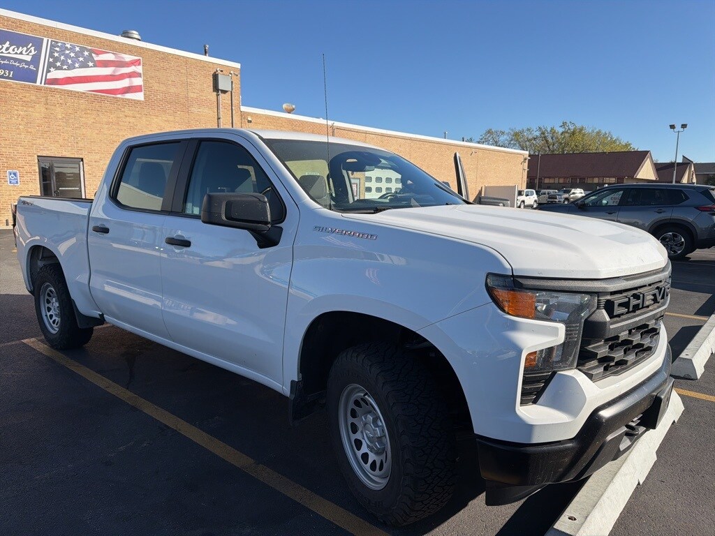 2023 Chevrolet Silverado 1500 WT EcoTec3 5.3L V8 4WD Summit White 10-Speed Automatic, 4WD, Jet Black Vinyl, 120-Volt Bed Mounted Power Outlet, 120-Volt Instrument Panel Power Outlet, 170 Amp Alternator, 220 Amp Alternator, 3.5" Monochromatic Display Driver Info Center, 4-Wheel Disc Brakes, 40/20/40 Front Split-Bench Seat, 6 Speakers, 6-Speaker Audio System, ABS brakes, Air Conditioning, AM/FM radio, Apple CarPlay/Android Auto, Auto High-beam Headlights, Auto-Locking Rear Differential, Automatic Emergency Braking, Auxiliary External Transmission Oil Cooler, Black (Semi-Gloss) Front Bumper, Black (Semi-Gloss) Rear Bumper, Black Manual Outside Mirrors, Bluetooth® For Phone, Brake assist, Delay-off headlights, Driver door bin, Dual front impact airbags, Dual front side impact airbags, Dual Rear USB Ports (Charge Only), Electrical Steering Column Lock, Electronic Cruise Control, Electronic Stability Control, External Engine Oil Cooler, EZ Lift Power Lock & Release Tailgate, Following Distance Indicator, Forward Collision Alert, Front anti-roll bar, Front Center Armrest w/Storage, Front Frame-Mounted Black Recovery Hooks, Front License Plate Kit, Front Pedestrian Braking, Front reading lights, Front wheel independent suspension, Fully automatic headlights, HD Rear Vision Camera, Heated Power-Adjustable Outside Mirrors, Hitch Guidance, Illuminated entry, Inside Rear-View Mirror w/Tilt, IntelliBeam Automatic High Beam On/Off, Lane Keep Assist w/Lane Departure Warning, Locking Tailgate, Low tire pressure warning, Manual Tailgate Function w/No EZ Lift, Manual Tilt Wheel Steering Column, Manual Tilt/Telescoping Steering Column (DISC), Not Equipped w/Rear USB Ports, Not Equipped w/Steering Column Lock, Occupant sensing airbag, Outside temperature display, Overhead airbag, Overhead console, Panic alarm, Passenger door bin, Passenger vanity mirror, Power Front Windows w/Driver Express Up/Down, Power Front Windows w/Passenger Express Down, Power Rear Windows w/Express Down, Power steering, Power windows, Preferred Equipment Group 1WT, Premium audio system: Chevrolet Infotainment 3, Radio data system, Radio: Chevrolet Infotainment 3 System, Rear 60/40 Folding Bench Seat (Folds Up), Rear reading lights, Rear step bumper, Remote Keyless Entry, Remote keyless entry, Rubberized-Vinyl Floor Covering, Solar Absorbing Tinted Glass, Speed-sensing steering, Split folding rear seat, Standard Suspension Package, Standard Tailgate, Tachometer, Tilt steering wheel, Traction control, Trailering Package, Trip computer, Variably intermittent wipers, Vinyl Seat Trim, Voltmeter, Wheels: 17" x 8" Ultra Silver Painted Steel, 10-Speed Automatic, 4WD, Jet Black Vinyl. 4D Crew Cab Recent Arrival! CARFAX One-Owner.