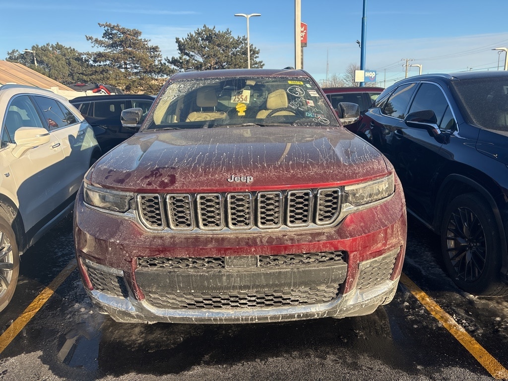 2021 Jeep Grand Cherokee L Limited Dual-Pane Panoramic Sunroof 3.6L V6 24V VVT 4WD Velvet Red Pearlcoat Dual-Pane Panoramic Sunroof, GPS Navigation, Interior Rear Facing Camera, Quick Order Package 22E, 10.1" Touchscreen Display, 2nd Row 60/40 Bench w/Manual Tip/Slide, 2nd Row Seat Center Armrest/Cupholders, 3 Rear Seat Head Restraints, 3.45 Rear Axle Ratio, 3rd row seats: split-bench, 4-Wheel Disc Brakes, 506 Watt Amplifier, 6 Speakers, 7-Passenger Seating, 9 Amplified Speakers w/Subwoofer, ABS brakes, Air Conditioning, Alloy wheels, AM/FM radio: SiriusXM w/360L, Anti-whiplash front head restraints, Apple CarPlay, Apple CarPlay/Android Auto, Audio memory, Auto High-beam Headlights, Automatic temperature control, Brake assist, Bridgestone Brand Tires, Bumpers: body-color, Capri Leather Seats, Center Rear 3-Point Seat Belt, Compass, Connected Travel & Traffic Services, Connectivity - US/Canada, Delay-off headlights, Disassociated Touchscreen Display, Driver door bin, Driver vanity mirror, Dual front impact airbags, Dual front side impact airbags, Electronic Stability Control, Emergency communication system, Four wheel independent suspension, Front anti-roll bar, Front Bucket Seats, Front Center Armrest w/Storage, Front dual zone A/C, Front fog lights, Front reading lights, Fully automatic headlights, Garage door transmitter, Google Android Auto, GPS Antenna Input, HD Radio, Heated door mirrors, Heated front seats, Heated rear seats, Heated steering wheel, Illuminated entry, Integrated Center Stack Radio, Integrated Voice Command w/Bluetooth, Knee airbag, Leather steering wheel, Low tire pressure warning, Manual Fold Seatbacks, Memory seat, Normal Duty Suspension, Occupant sensing airbag, Outside temperature display, Overhead airbag, Overhead console, Panic alarm, ParkView Rear Back-Up Camera, Passenger door bin, Passenger vanity mirror, Power door mirrors, Power driver seat, Power Liftgate, Power passenger seat, Power steering, Power windows, Radio data system, Radio: Uconnect 5 Nav w/10.1" Display, Radio: Uconnect 5 w/8.4" Display, Rear air conditioning, Rear anti-roll bar, Rear reading lights, Rear window defroster, Rear window wiper, Reclining 3rd row seat, Remote keyless entry, Roof rack: rails only, Security system, SiriusXM Satellite Radio, SiriusXM w/360L, Speed control, Speed-Sensitive Wipers, Split folding rear seat, Spoiler, Steering wheel mounted audio controls, Tachometer, Telescoping steering wheel, Tilt steering wheel, Traction control, Trip computer, Turn signal indicator mirrors, USB Host Flip, Variably intermittent wipers, Voltmeter, Wheels: 18" x 8.0" Fully Painted Aluminum 2, Wheels: 20" x 8.5" Polished/Painted Aluminum (DISC), Dual-Pane Panoramic Sunroof, GPS Navigation, Interior Rear Facing Camera, Quick Order Package 22E. 4D Sport Utility Recent Arrival! Priced below KBB Fair Purchase Price!