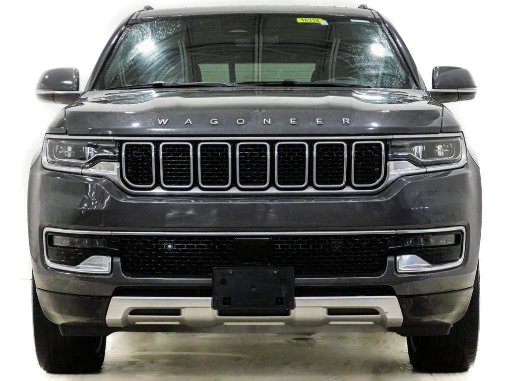 2022 Jeep Wagoneer Series II 3 Panel Sunroof 5.7L V8 4WD Baltic Gray Metallic Clearcoat 3 Panel Sunroof, Adjustable Roof Rail Crossbars, Cargo Cover, Navigation System, Premium Group I (DISC), Reversible Carpet/Vinyl Cargo Mat, 10 Speakers, 3.21 Rear Axle Ratio, 3rd row seats: bench, 4-Wheel Disc Brakes, ABS brakes, Adjustable pedals, Air Conditioning, Alloy wheels, AM/FM radio: SiriusXM with 360L, Anti-whiplash front head restraints, Audio memory, Auto-dimming door mirrors, Auto-dimming Rear-View mirror, Auto-leveling suspension, Automatic temperature control, Brake assist, Bumpers: body-color, Compass, Delay-off headlights, Driver door bin, Driver vanity mirror, Driver's Seat Mounted Armrest, Dual front impact airbags, Dual front side impact airbags, Electronic Stability Control, Exterior Parking Camera Rear, Four wheel independent suspension, Front anti-roll bar, Front Bucket Seats, Front Center Armrest w/Storage, Front dual zone A/C, Front fog lights, Front reading lights, Fully automatic headlights, Garage door transmitter, Genuine wood console insert, Genuine wood dashboard insert, Genuine wood door panel insert, Heated door mirrors, Heated front seats, Heated steering wheel, Illuminated entry, Knee airbag, Leather Trimmed Bucket Seats, Low tire pressure warning, Memory seat, Normal Duty Suspension, Occupant sensing airbag, Outside temperature display, Overhead airbag, Overhead console, Panic alarm, Passenger door bin, Passenger seat mounted armrest, Passenger vanity mirror, Pedal memory, Power adjustable front head restraints, Power door mirrors, Power driver seat, Power Liftgate, Power passenger seat, Power steering, Power windows, Quick Order Package 22J, Radio data system, Radio: Uconnect 5 Nav w/10.1" Display, Rain sensing wipers, Rear air conditioning, Rear anti-roll bar, Rear dual zone A/C, Rear reading lights, Rear seat center armrest, Rear window defroster, Rear window wiper, Reclining 3rd row seat, Remote keyless entry, Security system, Speed control, Speed-sensing steering, Speed-Sensitive Wipers, Split folding rear seat, Steering wheel memory, Steering wheel mounted audio controls, Tachometer, Telescoping steering wheel, Tilt steering wheel, Traction control, Trip computer, Turn signal indicator mirrors, Variably intermittent wipers, Ventilated front seats, Voltmeter, Wheels: 20" x 9.0" Aluminum Base Finish, Wheels: 22" x 9.0" Premium 3 Aluminum (DISC), 3 Panel Sunroof, Adjustable Roof Rail Crossbars, Cargo Cover, Navigation System, Premium Group I (DISC), Reversible Carpet/Vinyl Cargo Mat. 4D Sport Utility Recent Arrival! CARFAX One-Owner.