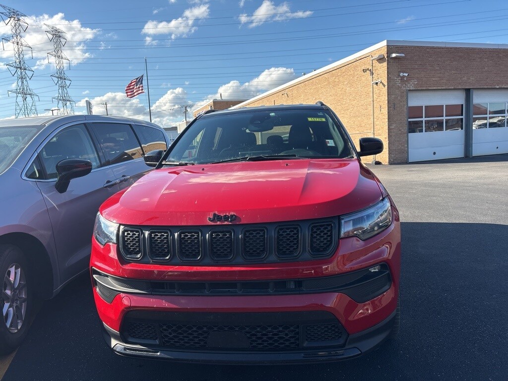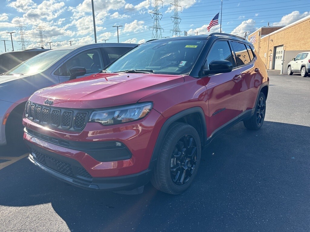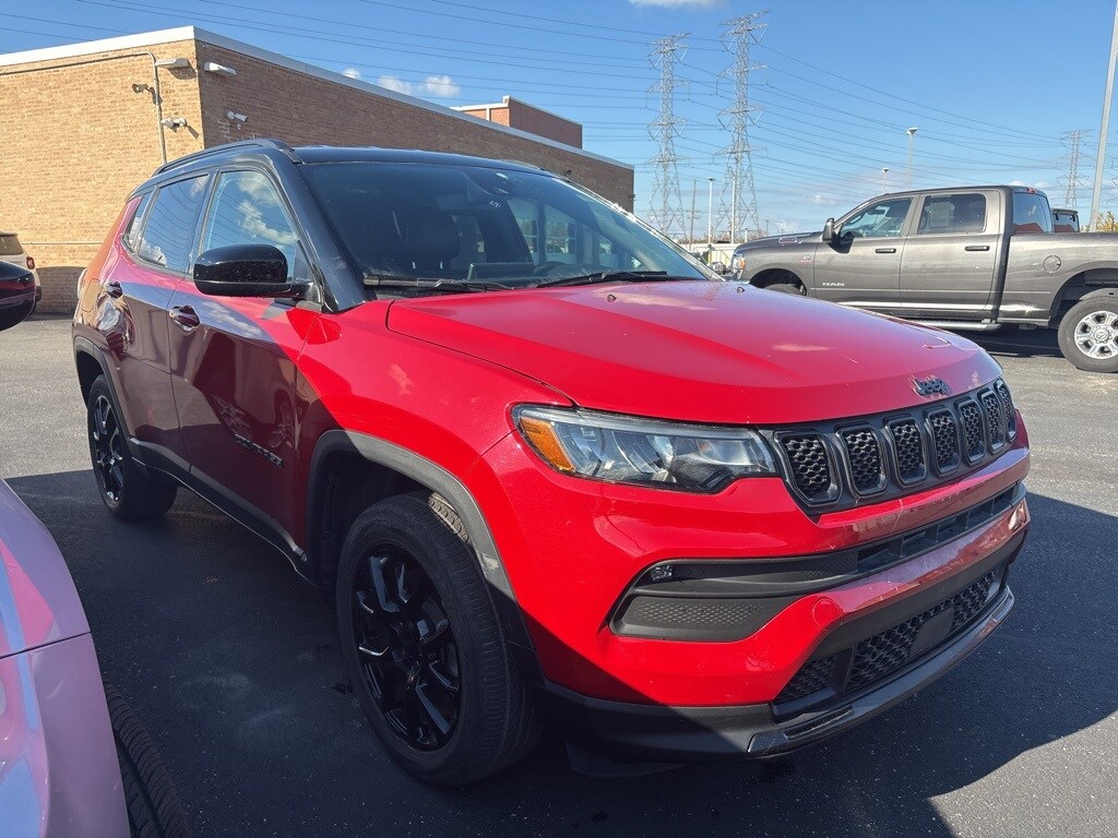 2023 Jeep Compass Altitude 2.0L I4 DOHC 4WD Redline Pearlcoat 4WD, 17" x 7.0" Aluminum Wheels, 3.73 Final Drive Ratio, 4-Wheel Disc Brakes, 6 Speakers, ABS brakes, Air Conditioning, Alloy wheels, Altitude Special Edition, AM/FM radio: SiriusXM, Auto High-beam Headlights, Black Day Light Opening Moldings, Black Roof, Brake assist, Bumpers: body-color, Compass, Delay-off headlights, Driver door bin, Driver vanity mirror, Dual front impact airbags, Dual front side impact airbags, Electronic Stability Control, Four wheel independent suspension, Front anti-roll bar, Front Bucket Seats, Front Center Armrest w/Storage, Front fog lights, Front reading lights, Fully automatic headlights, Gloss Black Badges, Gloss Black Grille & Crosshairs, Heated door mirrors, Illuminated entry, Knee airbag, Leather Shift Knob, Light Tungsten Interior Accent Stitching, Low tire pressure warning, Occupant sensing airbag, Outside temperature display, Overhead airbag, Overhead console, Panic alarm, ParkView Rear Back-Up Camera, Passenger door bin, Passenger vanity mirror, Piano Black Interior Accents, Power door mirrors, Power steering, Power windows, Premium Cloth/Vinyl Bucket Seats, Quick Order Package 29B Altitude, Radio: Uconnect 5 w/10.1" Display, Rear anti-roll bar, Rear seat center armrest, Rear window defroster, Rear window wiper, Remote keyless entry, Security system, Speed control, Split folding rear seat, Spoiler, Steering wheel mounted audio controls, Tachometer, Telescoping steering wheel, Tilt steering wheel, Traction control, Trip computer, Variably intermittent wipers, Wheels: 18" x 7" Gloss Black Painted Aluminum, 4WD. 4D Sport Utility Recent Arrival! CARFAX One-Owner. 24/32 City/Highway MPG Priced below KBB Fair Purchase Price!