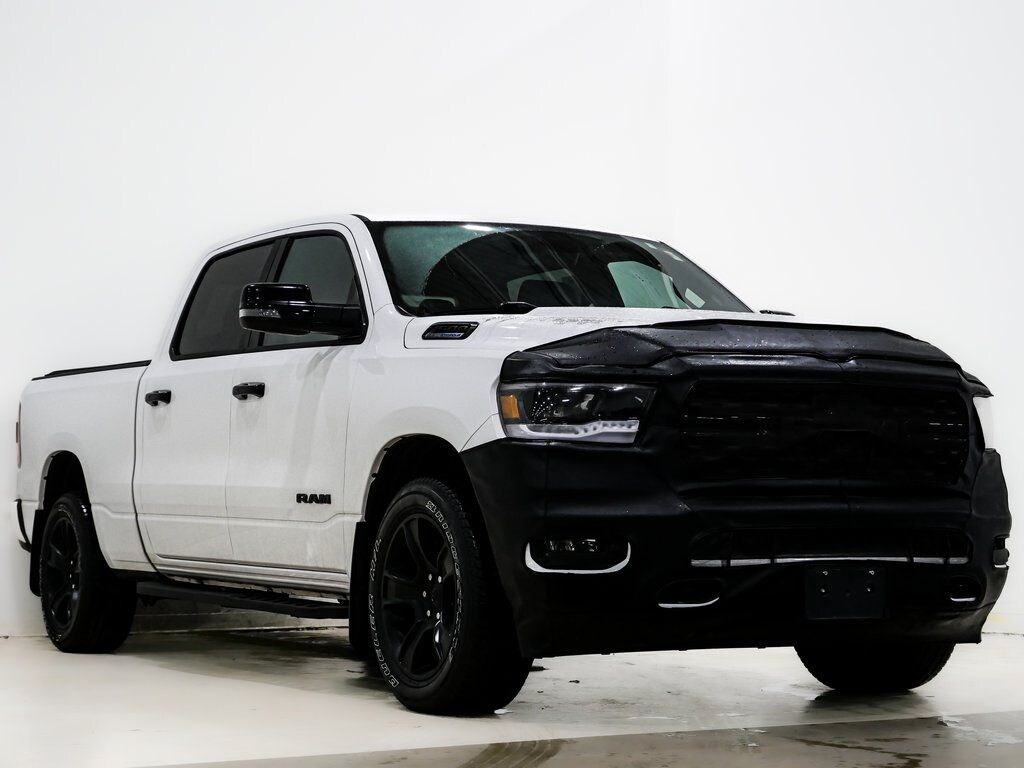 2023 Ram 1500 Big Horn/Lone Star Night Edition HEMI 5.7L V8 Multi Displacement VVT eTorque 4WD Bright White Clearcoat 115V Auxiliary Power Outlet, 12" Touchscreen Display, 2nd Row In Floor Storage Bins, 3 Rear Seat Head Restraints, 4 Way Front Headrests, 400W Inverter, 4G LTE Wi-Fi Hot Spot, 9 Amplified Speakers w/Subwoofer, Accent Color Door Handles, Accent Color Premium Power Mirrors, Air Conditioning ATC w/Dual Zone Control, All R1 High Radios, All Radio Equipped Vehicles, Anti-Spin Differential Rear Axle, Apple CarPlay, Auto-Dimming Exterior Driver Mirror, Auto-Dimming Rear-View Mirror, Bed Utility Group, Big Horn Badge, Big Horn Level B Equipment Group, Black Exterior Mirrors, Black Exterior Truck Badging, Black Headlamp Bezels, Black Interior Accents, Black Painted Exterior Mirrors Caps, Black Premium Power Mirrors, Body Color Front Bumper, Body Color Rear Bumper w/Step Pads, Bucket Seats, Center Console Parts Module, Class IV Receiver Hitch, Cluster 7.0" TFT Color Display, Connected Travel & Traffic Services, Connectivity - US/Canada, Convex Wide-Angle Exterior Mirror Insert, Deluxe Cloth Bucket Seats, Disassociated Touchscreen Display, Dual Exhaust w/Black Tips, Exterior Mirrors Courtesy Lamps, Exterior Mirrors w/Heating Element, Exterior Mirrors w/Supplemental Signals, For Details, Visit DriveUconnect.com, For More Info, Call 800-643-2112, Front Fog Lamps, Front LED Fog Lamps, Front Seat Back Map Pockets, Full Length Floor Console, Global Telematics Box Module (TBM), Glove Box Lamp, Google Android Auto, GPS Antenna Input, GPS Navigation, Grille Surround 1 Black Texture 2 Black, HD Radio, Heated Front Seats, Heated Steering Wheel, Integrated Center Stack Radio, Integrated Voice Command w/Bluetooth, LED Footwell Lighting, LED Reflector Headlamps, LED Taillamps, Manual Adjust 4-Way Front Passenger Seat, Media Hub w/2 Charge Only USBs, MOPAR 4 Adjustable Cargo Tie-Down Hooks, MOPAR Deployable Bed Step, MOPAR Spray In Bedliner, Night Edition, ParkSense Front/Rear Park Assist w/Stop, Pick-Up Box Lighting, Power 2-Way Driver Lumbar Adjust, Power 8-Way Driver Seat, Power Adjustable Pedals, Power-Folding Mirrors, Premium Lighting Group, Quick Order Package 27Z Big Horn, Radio: Uconnect 5 Nav w/12.0" Display, RAM Grille Badge - Black, Rear 60/40 Folding Seat, Rear Center Armrest, Rear Dome w/On/Off Switch Lamp, Rear Power Sliding Window, Rear Window Defroster, Remote Start System, Security Alarm, SiriusXM Radio Service, SiriusXM Satellite Radio, SiriusXM w/360L, Sun Visors w/Illuminated Vanity Mirrors, Universal Garage Door Opener, USB Host Flip, Wheels: 20" x 9.0" Premium Paint/Polished, 3.21 Rear Axle Ratio, 4-Wheel Disc Brakes, 48V Belt Starter Generator, 6 Speakers, ABS brakes, Active Noise Control System, Air Conditioning, Alloy wheels, AM/FM radio, Blind Spot & Cross Path Detection, Brake assist, Bumpers: chrome, Cloth Bench Seat, Compass, Delay-off headlights, Driver door bin, Dual front impact airbags, Dual front side impact airbags, Dual Rear Exhaust w/Bright Tips, Electronic Stability Control, Emergency communication system: SiriusXM Guardian, Front anti-roll bar, Front Center Armrest w/Storage, Front License Plate Bracket, Front reading lights, Front wheel independent suspension, Fully automatic headlights, Heated door mirrors, Heavy-Duty Engine Cooling, HEMI Badge, Illuminated entry, Leather steering wheel, Low tire pressure warning, Manufacturer's Statement of Origin, MOPAR Front & Rear Rubber Floor Mats, Occupant sensing airbag, Outside temperature display, Overhead airbag, Overhead console, Panic alarm, ParkView Rear Back-Up Camera, Passenger door bin, Passenger vanity mirror, Power door mirrors, Power steering, Power windows, Radio data system, Radio: Uconnect 3 w/5" Display, RAM Grille Badge - Chrome, Rear anti-roll bar, Rear seat center armrest, Rear step bumper, Rear Underseat Compartment Storage, Rear Wheelhouse Liners, Remote keyless entry, Speed control, Split folding rear seat, Steering wheel mounted audi